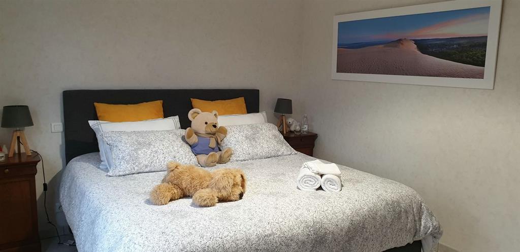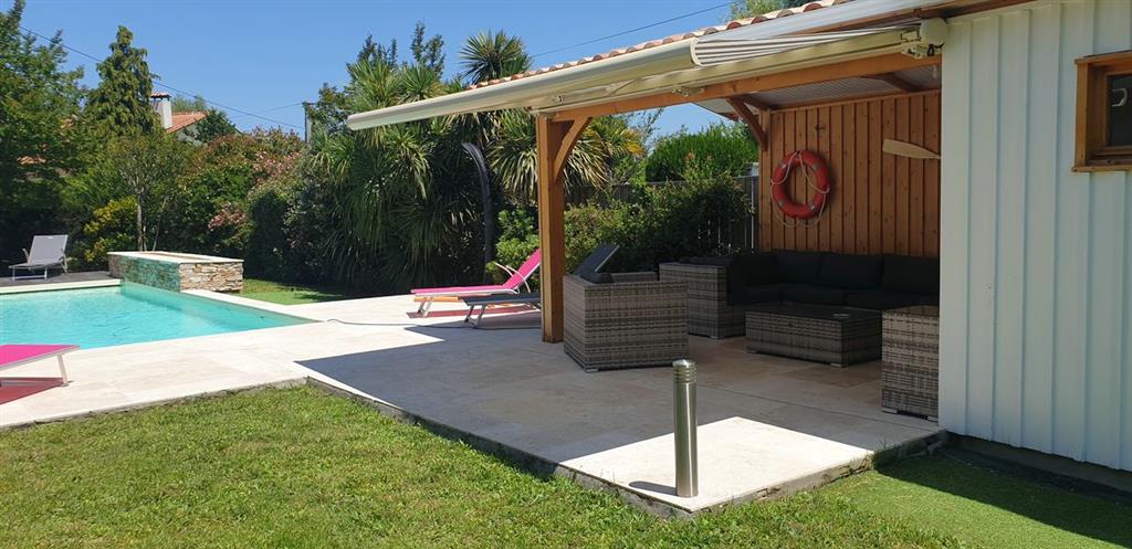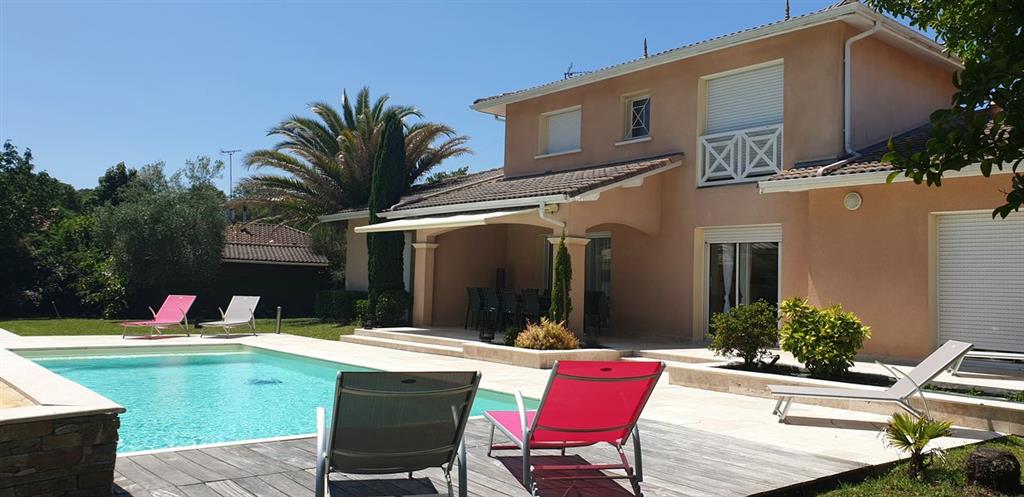 Angenehmes Haus von 180 m² in einer ruhigen Wohngegend auf einem vollständig umzäunten Waldgrundstück von 1500 m². Es liegt in der Nähe des Hume-Strands, der 7 Häfen von Gujan, des Aqualand, des Golfplatzes und einer Vielzahl sportlicher und kultureller Aktivitäten, 7 km von Arcachon und der Pilat-Düne entfernt.