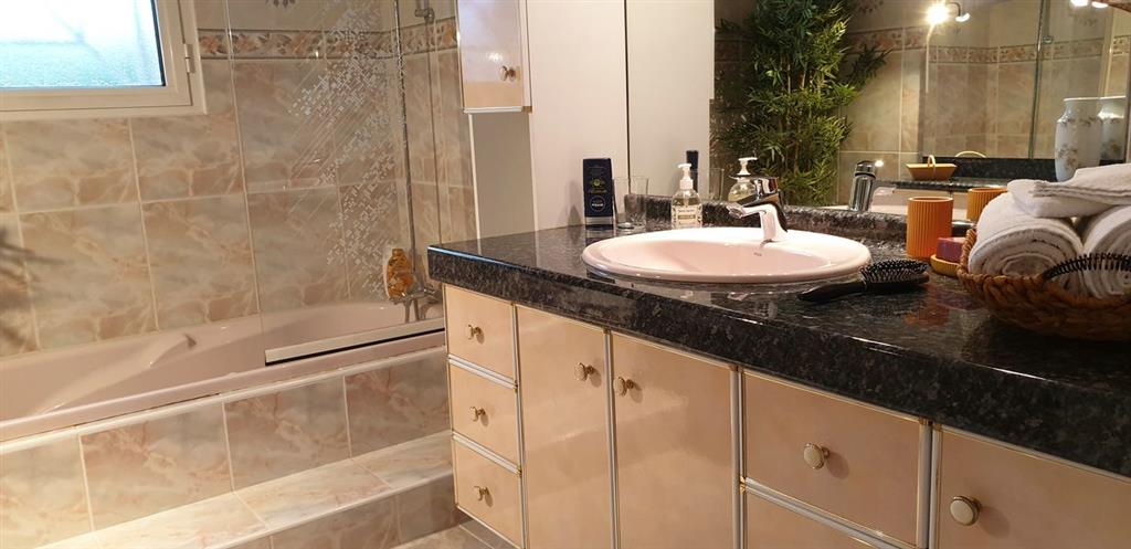 Es verfügt über eine voll ausgestattete Küche, ein Esszimmer mit Blick auf den Pool, ein mit WLAN ausgestattetes Wohnzimmer mit Flachbildfernseher, eine Speisekammer mit Waschmaschine und Trockner, 4 Schlafzimmer, 3 Kingsize-Doppelbetten, 1 140-cm-Bett, 2 Einzelbetten 90, 2 Badezimmer, 2 Toiletten.