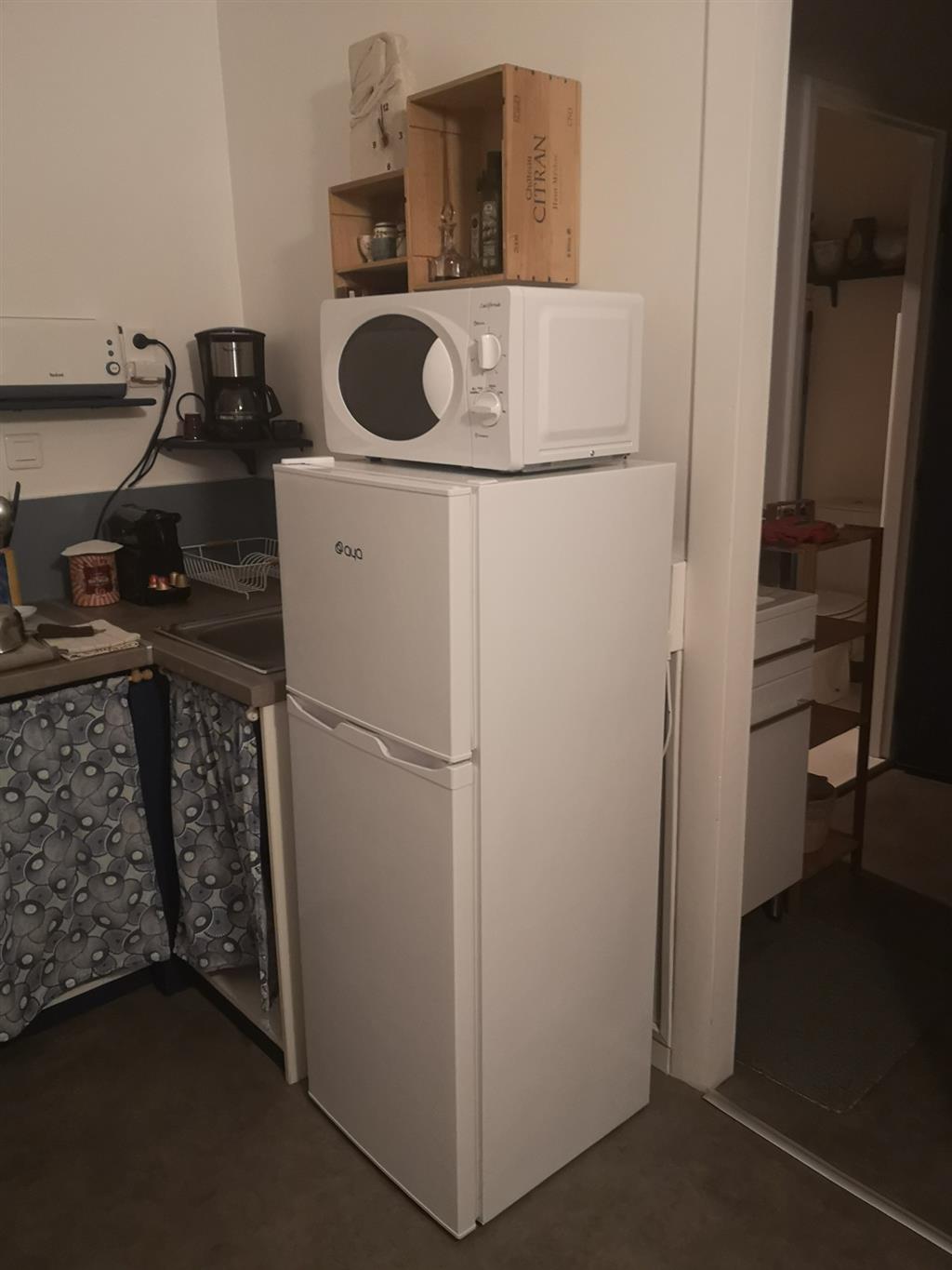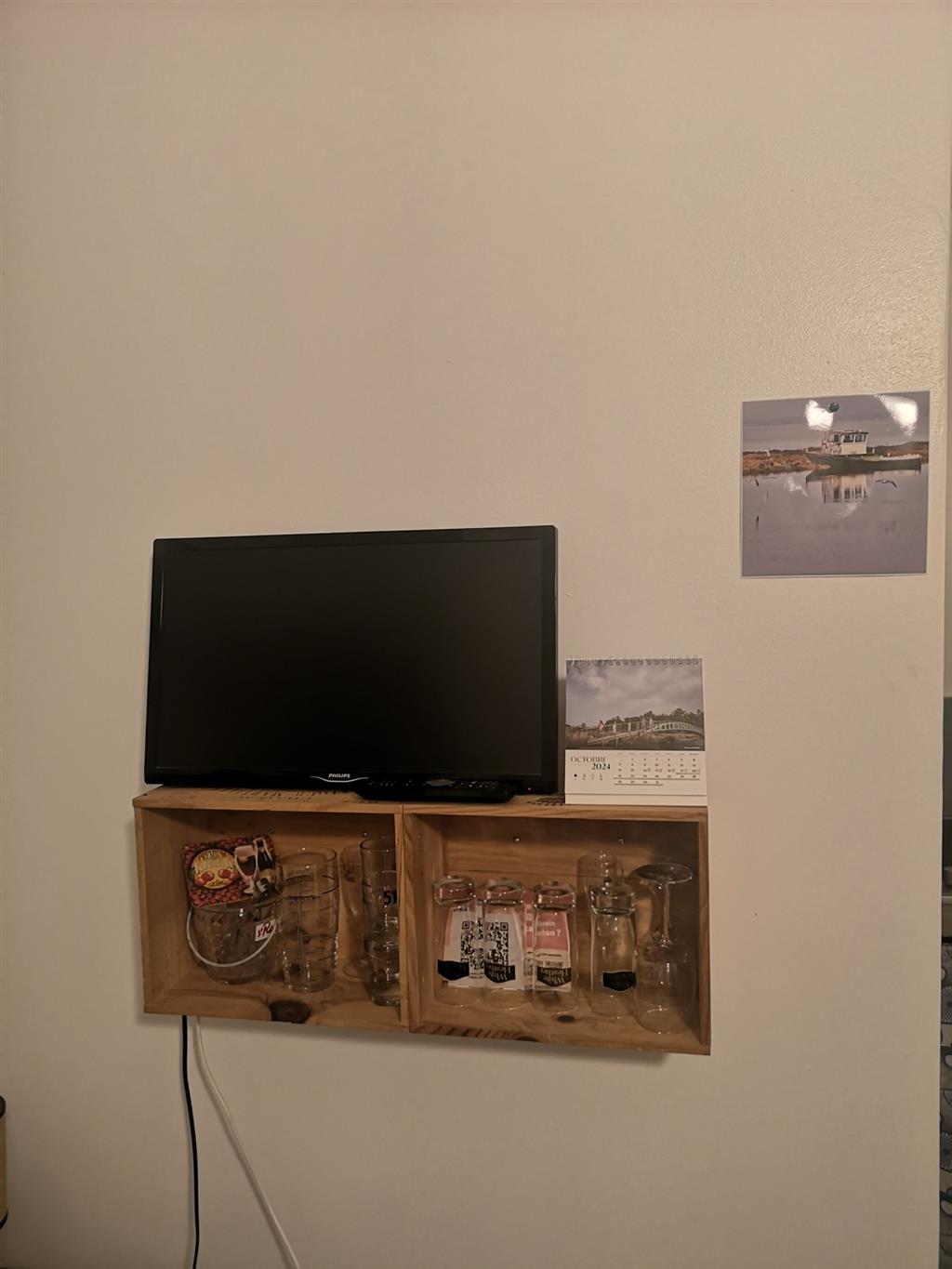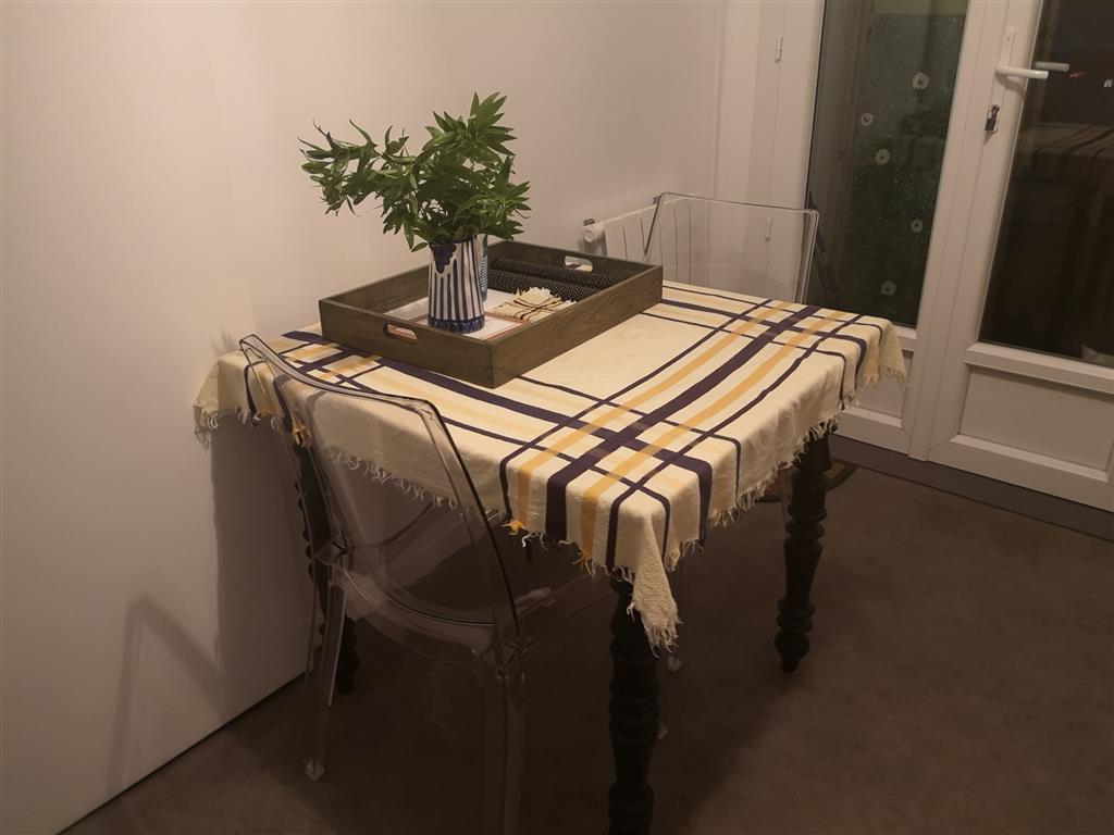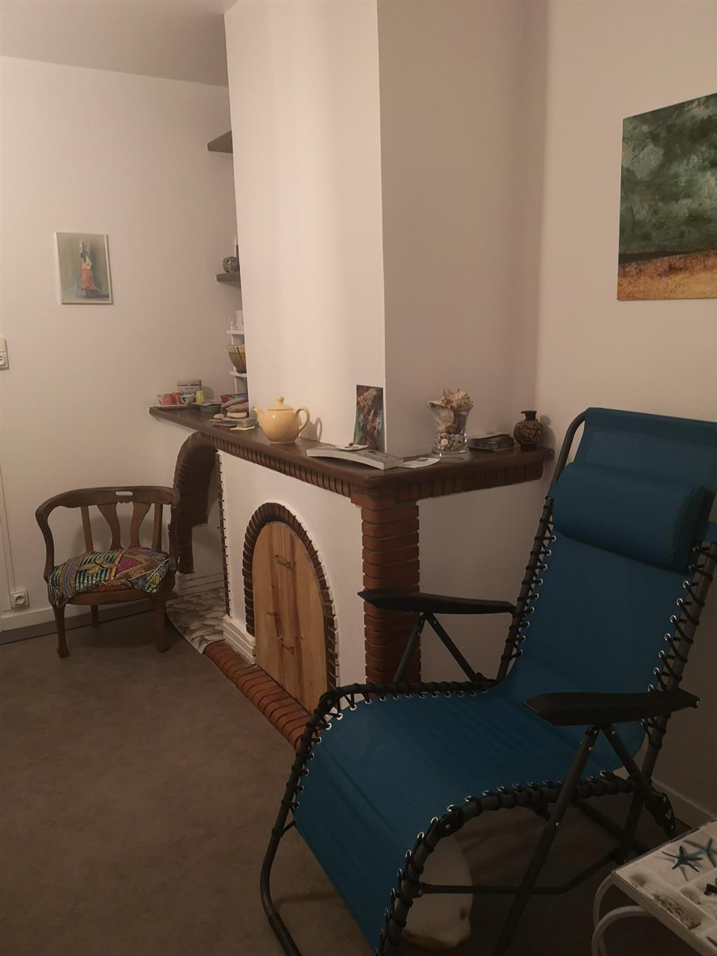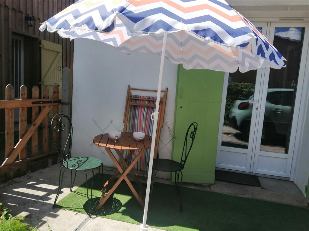 You enter through a 40 m2 courtyard, a flowery courtyard, with garden furniture and the possibility of parking your car. This courtyard leads you into the living room: kitchenette with fridge, mini-oven, microwave, small lounge area, TV, table, chairs, armchair, deckchair. A glass of rosé or white wine awaits you with some local products.
