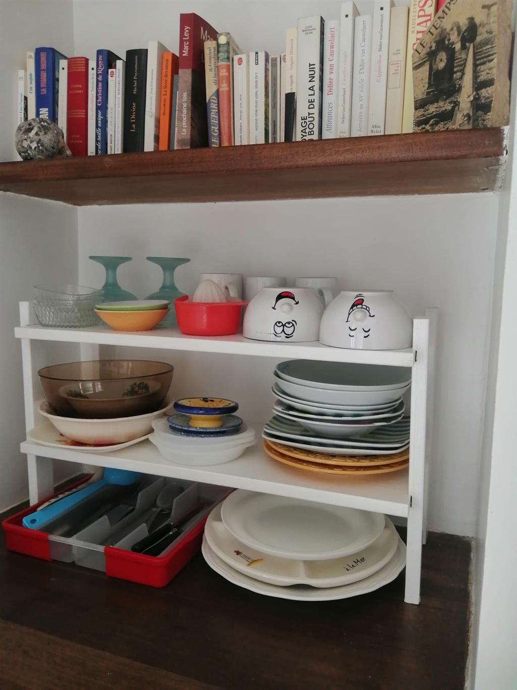 The bedroom opens onto the toilet area with shower and behind the bathroom, a small corridor where you can put down some bulky luggage, library at your disposal.