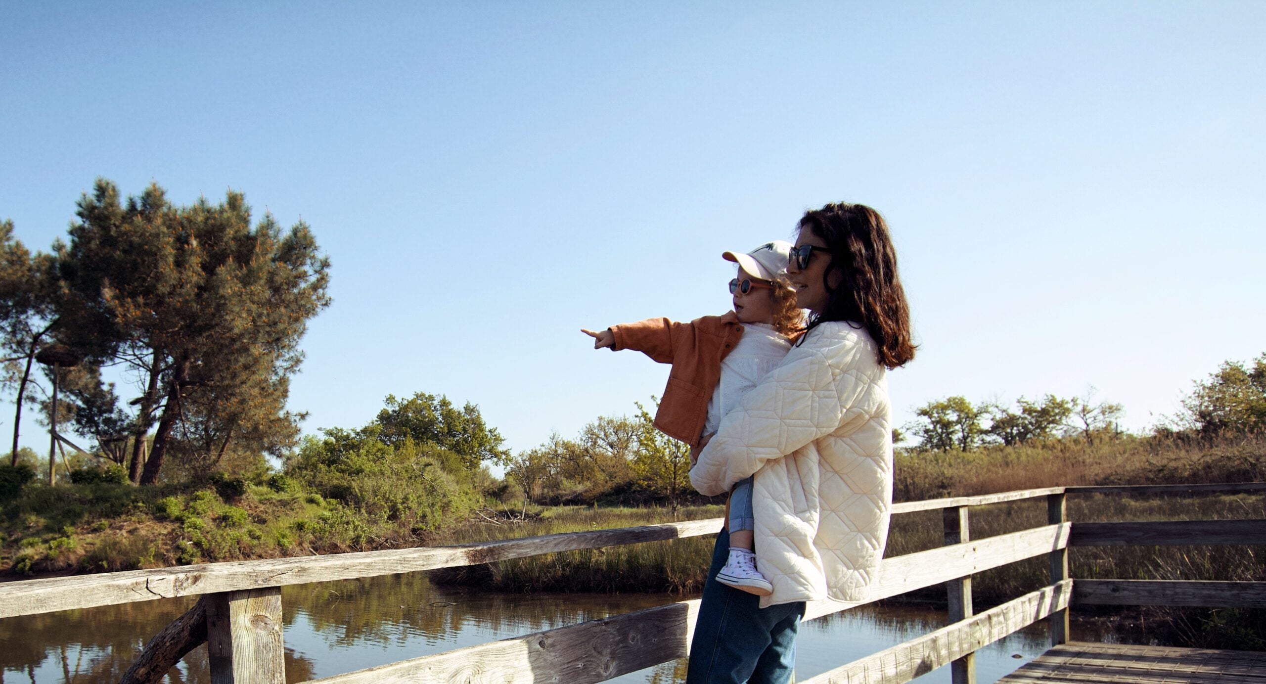 Réunies et complices, la jeune maman et sa petite fille découvrent à fleur d’eau toute l’étendue de ces paysages sauvages, rendus accessibles par une succession de passerelles en bois et de petits pontons. Bécassines, hérons cendrés, libellules et sternes se partagent la superbe de cet écrin de verdure, où rien pas même la présence humaine, ne vient les perturber.