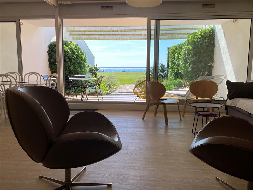 Appartement en rez-de-chaussée, situé en première ligne avec accès direct sur la plage par un jardin privatif. Comprenant 2 chambres avec salle de bain vous profiterez d’une vue panoramique sur le bassin, la dune du Pilat face au phare du Cap Ferret.