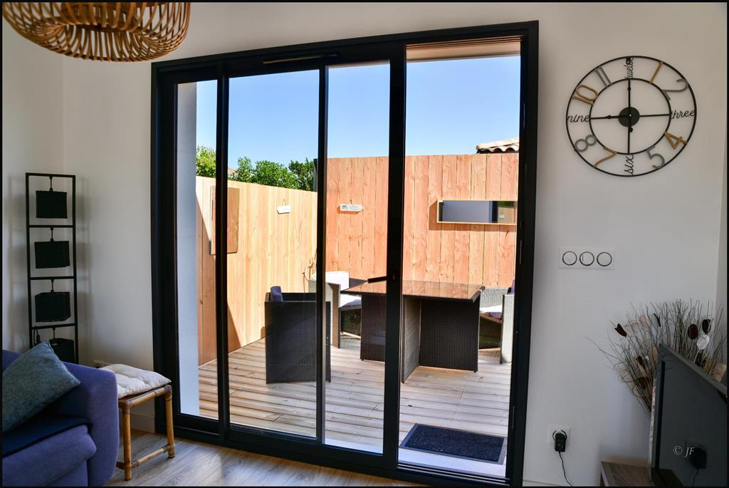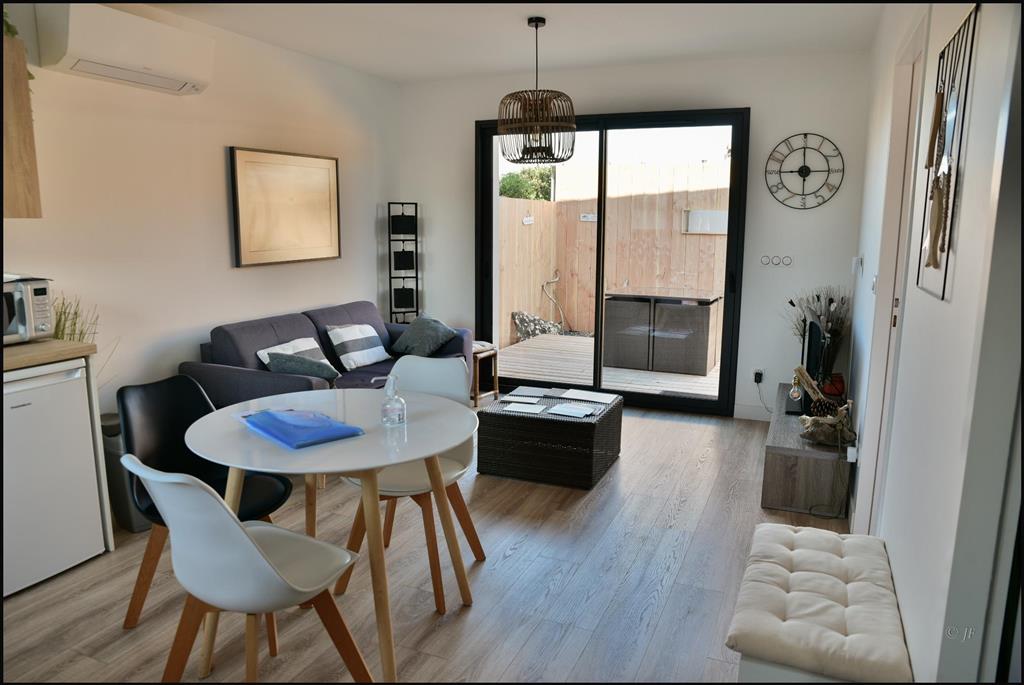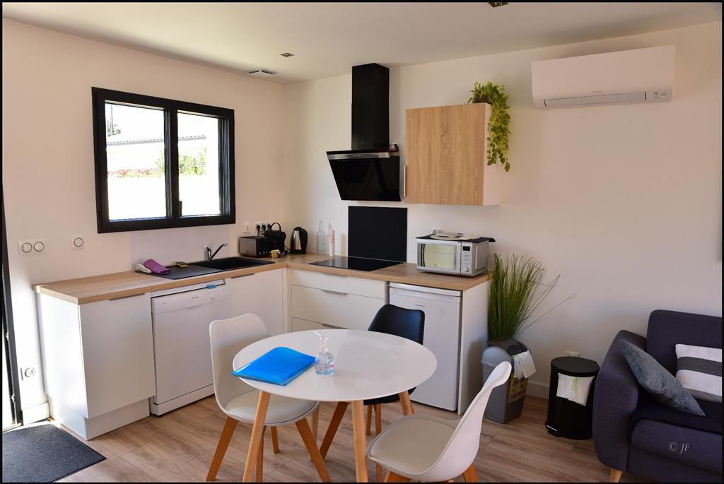 Ce logement CLIMATISE composé de 1 chambre avec lit de 160, 1 pièce de vie comprenant cuisine équipée et canapé convertible confortable pour 2 pers, 1 salle d’eau avec 1 douche à l’italienne/lavabo/wc se trouve sur notre propriété mais il est complètement indépendant et sans vis-à-vis
