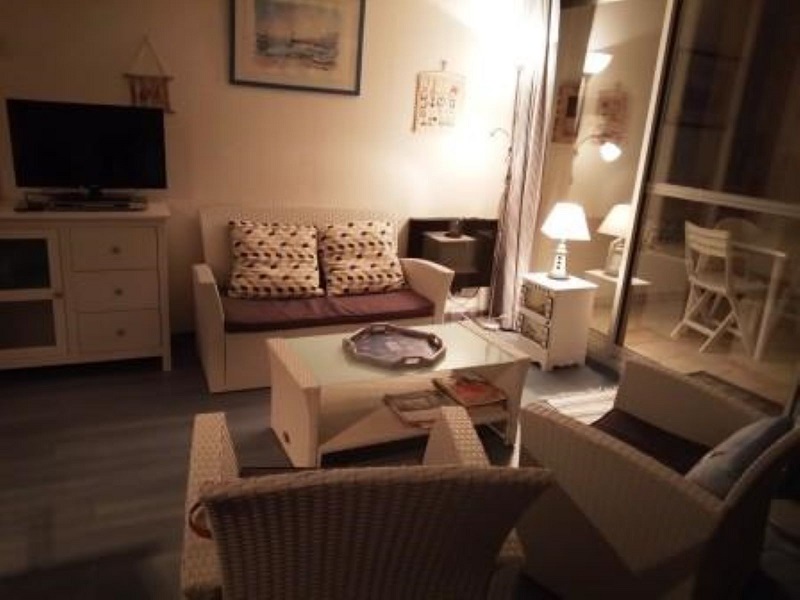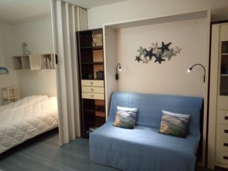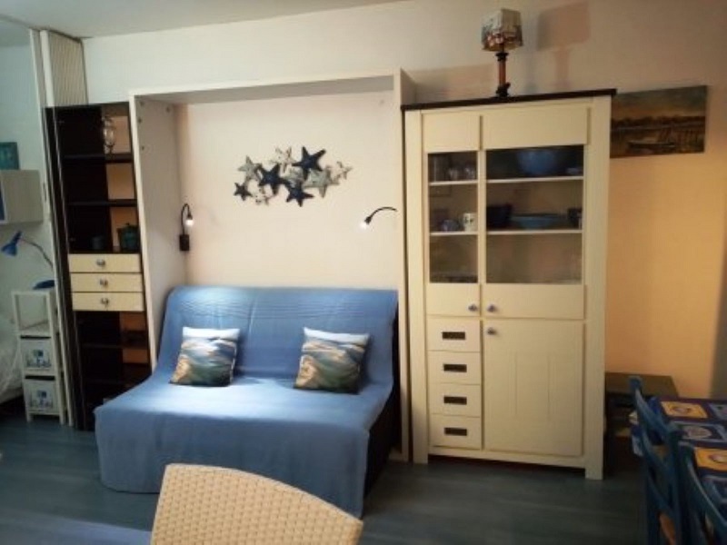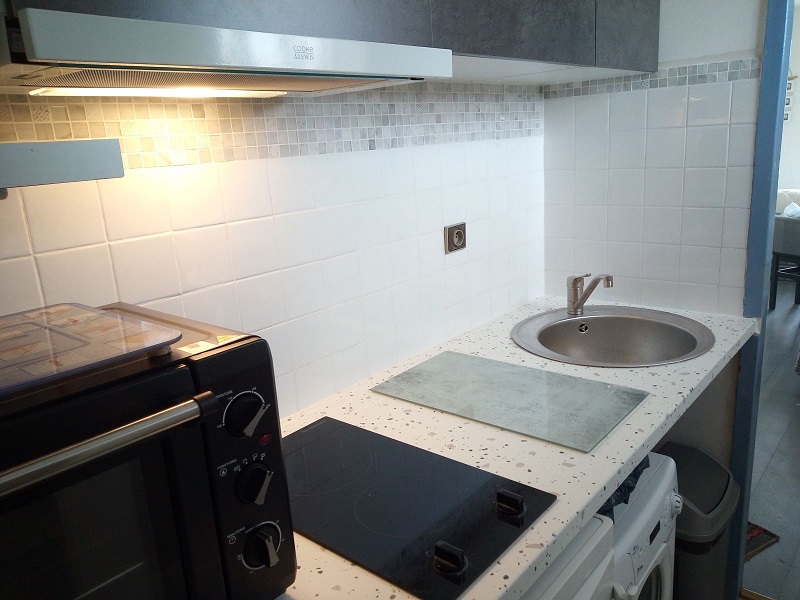 Entrée avec placards, SdB avec baignoire et WC, séjour avec coin salon et coin repas, canapé-lit BZ en 140 dans le séjour. La chambre, avec un couchage 2 personnes, séparable si besoin en 2 lits d’une personne, est isolée du séjour par une cloison type « atelier ». La cuisinette, séparée, est entièrement équipée et refaite à neuf.