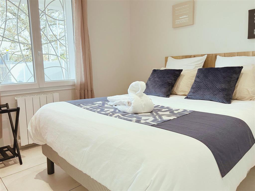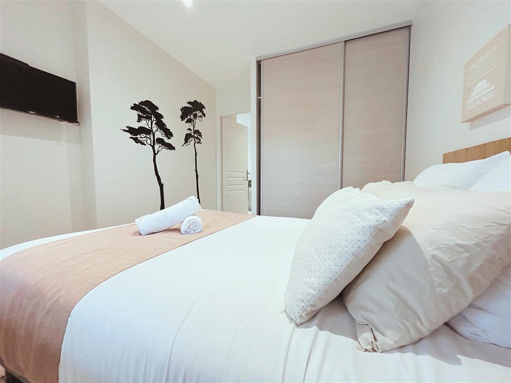 Le logement se situe dans un quartier calme à 2km du centre ville et du port de Biganos. Il comporte deux lits double 140 et 1 canapé lit dans le salon.