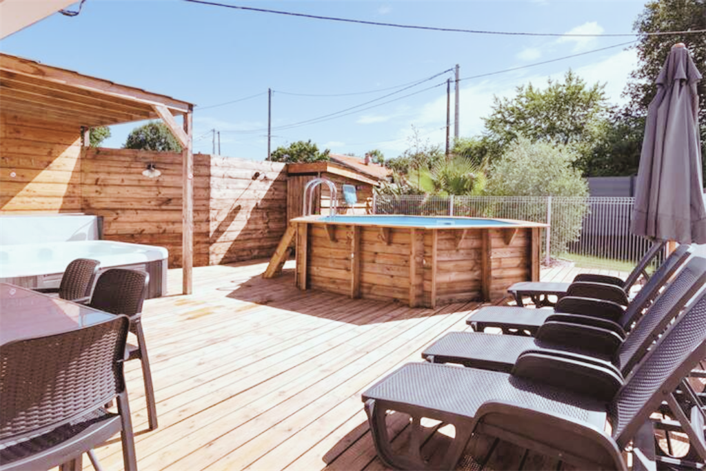 Maison mitoyenne avec piscine chauffée et spa entièrement privés au cœur du Bassin d’Arcachon.