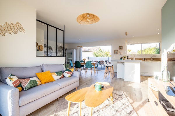 Elle est constituée d’un espace séjour cuisine traversant, avec un cellier attenant et d’un espace nuit composé de trois chambres et d’une salle de bain avec douche et baignoire.