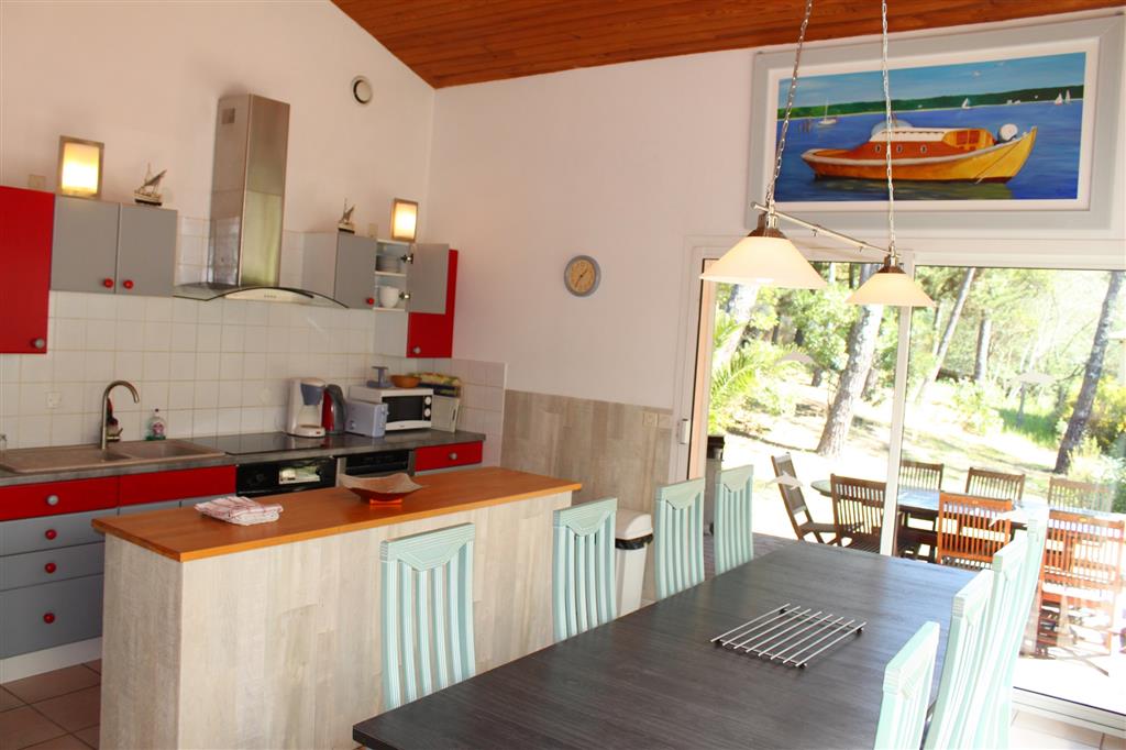 Maison de 130 m² de plain-pied, située au Cap Ferret à 200 m des plages océanes, à 500 m du bassin, 2 km du centre-ville. Avec ses 4 chambres, ce logement peut accueillir jusqu’à 9 personnes. Une grande terrasse, un joli jardin arboré, et durant l’été, on joue les prolongations à l’extérieur. Pendant les saisons plus fraiches, la cheminée et le jacuzzi permettent de passer de bon moment à l’intérieur de la maison. Location au week-end, à la semaine, à la quinzaine et au mois