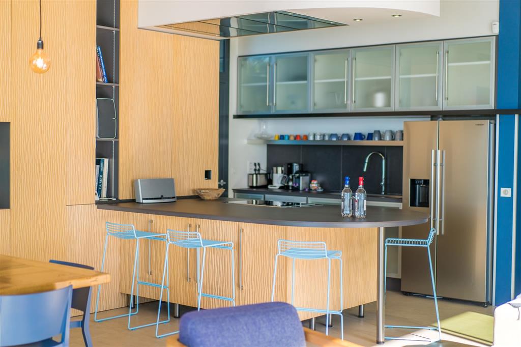 -Spacieux salon avec baies vitrés a galandage ouvrant sur une terrasse bois avec salon extérieur. Cuisine équipée ouverte avec ilots central. 5 chambres, dont 4 vue sur mer, toutes équipées d’une salle de bain et wc. 1 chambre avec entrée indépendante, idéal pour « nounou », avec salle de bain. 1 salon home cinéma, festif équipé de sono et bar. 1 terrasse Sud/Ouest, vue panoramique sur le bassin. Salon de jardin. Accès directe à la plage. Quai privatif, idéal pour les couchers de soleil. Climatisation.