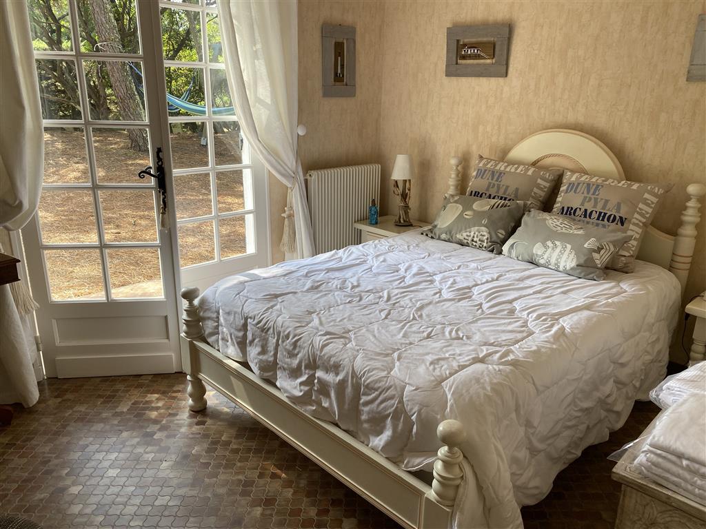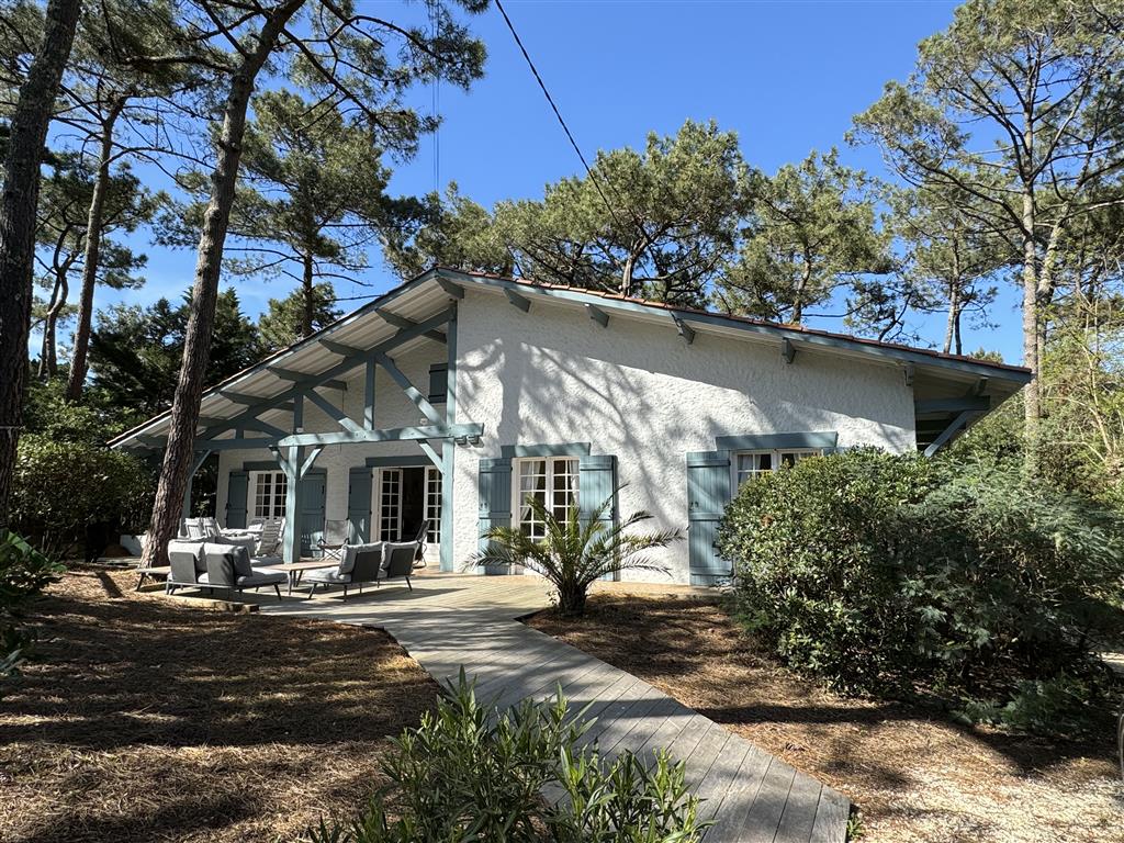 Cette villa landaise de 135 m², de plain pied, sous les pins, est situé dans le village de l’Herbe. A moins de 500 mètres des plages du Bassin d’Arcachon, à seulement 1 km des plages océanes et du village du Cap Ferret, tout peut ici se faire à vélo ou à pied.