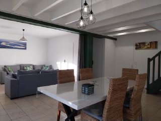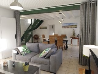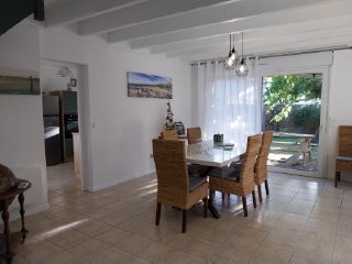 La Villa Nana est située à 5mn à pieds du centre-ville, du port de plaisance et de la plage du Bassin, nombreuses pistes cyclables à 100m pour des balades entre mer et forêts. Sur 90m², au RDC un salon séjour, une cuisine neuve indépendante, une salle de bains et un WC séparé. Le salon se transforme en chambre intime avec un canapé lit, isolée par des rideaux opaques. A l’étage deux chambres et une salle d’eau avec WC.