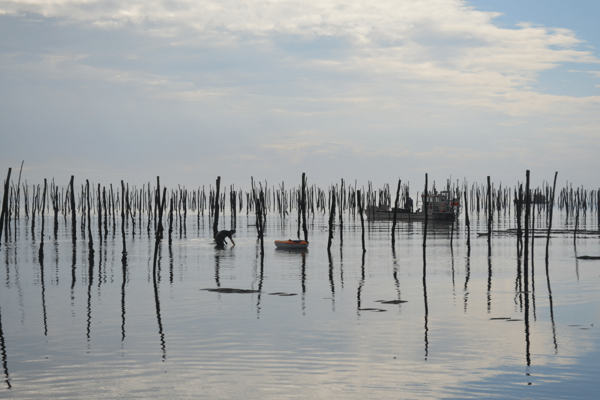 Ici, les conditions sont propices à la culture de l’huître. Grâce au rayonnement solaire, au climat et à la salinité du Bassin, ce site naturel d’exception est le premier site naisseur de France. Les ostréiculteurs utilisent une technique appelée le captage.