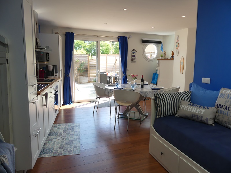 «"Douce Farniente" è una casa in legno situata in una tranquilla e appartata zona residenziale. È ideale per una sosta vicino al terminal dei traghetti di Arcachon Bassin o per rilassarsi in riva all'oceano, raggiungibile in soli 15 minuti di auto e meno di un'ora in bicicletta. Questa piccola casa può ospitare quattro persone e dispone di una graziosa terrazza in legno di 20 m² e di un parcheggio privato.
