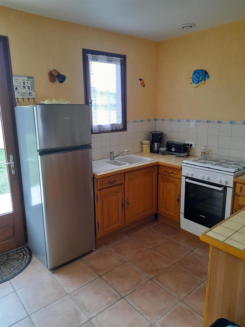 Casa (al piano terra) di 60 m² composta da: 1 soggiorno, 1 soggiorno con angolo cottura, 2 camere da letto, 1 con un letto da 160 cm e un'altra con 2 letti da 90 cm, 1 bagno con doccia, 1 WC separato.