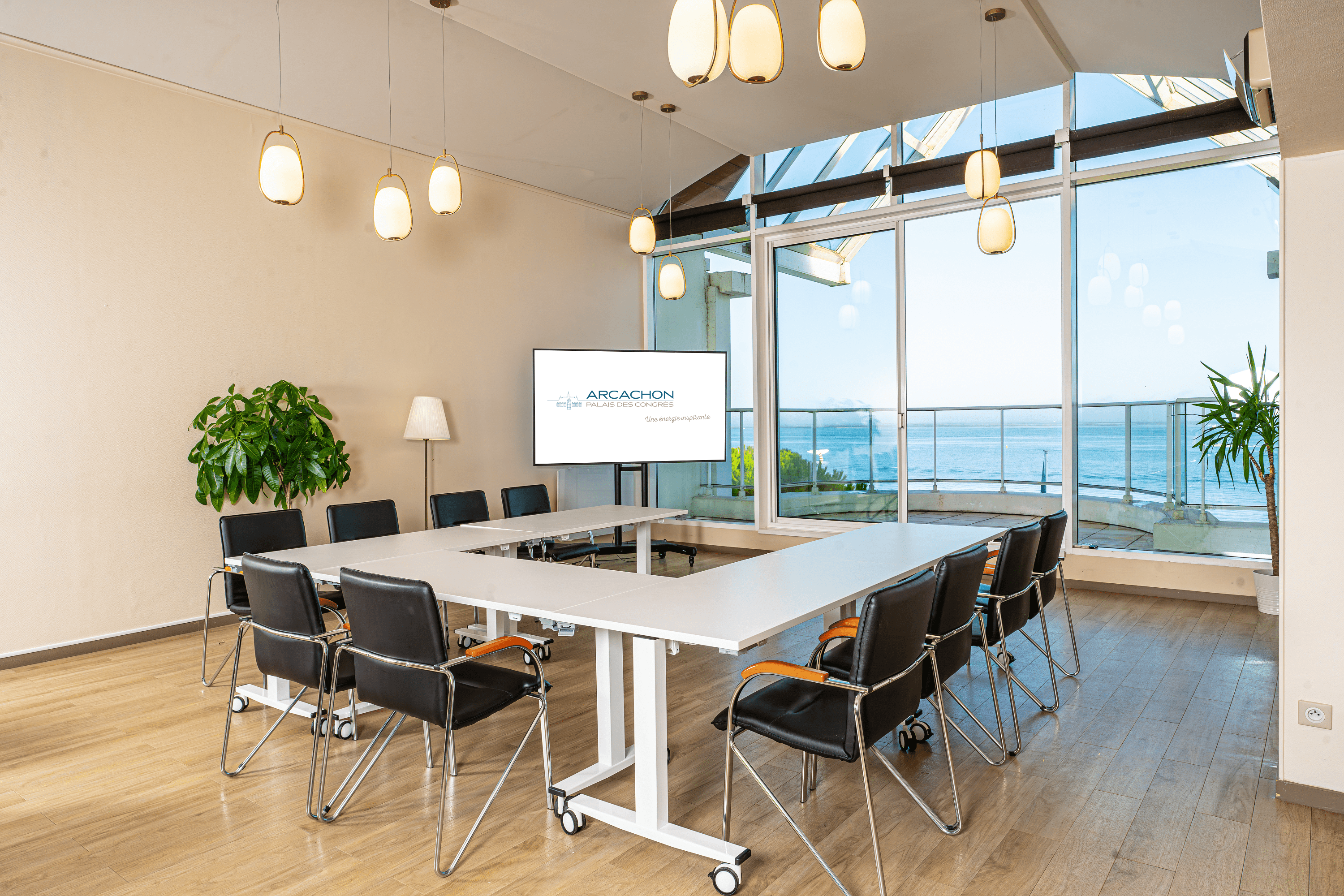 Baignée par la lumière du Bassin d’Arcachon avec sa grande baie vitrée s’ouvrant sur le front de mer, ce salon prestigieux de 70 m² est l’espace idéal pour accueillir vos comités de direction, vos conférences de presse, vos réunions, vos conseils d’administration…
