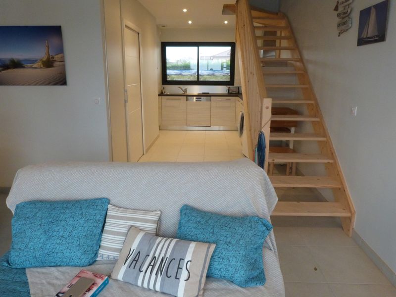 这间小屋一方面坐落在牡蛎养殖户储存牡蛎的水库边缘,另一方面坐落在连接居让 7 个港口的道路沿线,是您在阿卡雄 Bassin 地区度假的理想而原始的避难所。Ustrote 海滨小屋于 2017 年按照最新的舒适标准建造,位于拉罗斯港和居让之间,地处牡蛎养殖生活的中心,享有绝佳的景致。其客房分布在两层:一楼设有带设备齐全厨房的客厅、用餐区和带沙发的休息室,沙发可通往带花园家具的露台,以及带卫生间的浴室。二楼设有通向楼梯(非封闭式)的卧室,配备两张 90 英寸床和一间私人浴室。